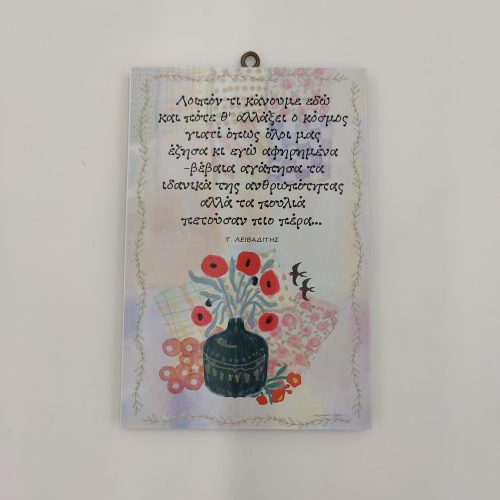 Οι τοίχοι ενός χώρου είναι ο λευκός καμβάς της προσωπικότητας και της αισθητικής σας. Στη συλλογή μας από διακοσμητικές πινακίδες και κάδρα τοίχου, σας προσφέρουμε την ευκαιρία να μεταμορφώσετε κάθε δωμάτιο, προσθέτοντας μια πινελιά αυθεντικότητας, χιούμορ και στυλ. Μια προσεκτικά επιλεγμένη πινακίδα – κάδρο δεν είναι απλώς ένα διακοσμητικό στοιχείο, είναι μια δήλωση που δίνει ζωή και ταυτότητα στον προσωπικό ή επαγγελματικό σας χώρο.